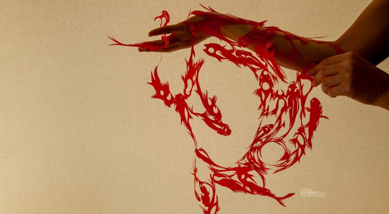 Nahoko Kojima’s largest Paper Cut Sculpture to date, a handmade life-sized Blue Whale called Shiro (meaning ‘White’ in Japanese) was made from a very large sheet of custom made Japanese Washi paper near 150 square metres in size. The result was a sculpture swimming out of the ground in a 32 metre hall at the BACC Bangkok. The sculpture itself was 23 metres in length, continuing Kojima’s process of creating works that are true to scale. Using the sculptures as a canvas on which to cut her intricate stories and experiences the Artist conveys her unique way of looking at the World which has brought much joy to art lovers around the globe.